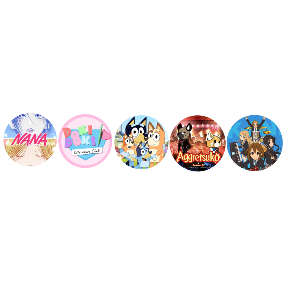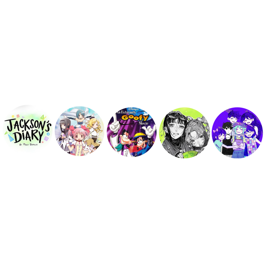 Death Note, Fionna and Cake, The Summer Hikaru Died, Adventure Time, Both goofy movies, Jackson’s Diary, Other Animes (listed below), tgswiiwagaa, omori, ddlc, puella magi madoka magica, a silent voice, NANA, sanrio, roblox, bluey, K-ON, The promised neverland, aggretsuko, Blue period, sasaki to miyano, doukyuusei classmates, the stranger by the shore (movie), chikn nuggit, lots of cartoon network shows (SU, tawog, etc), Saiki K, given, studio ghibli, yuri on ice, garfield, I love Amy, vocaloid, sk8 the infinity. . .
